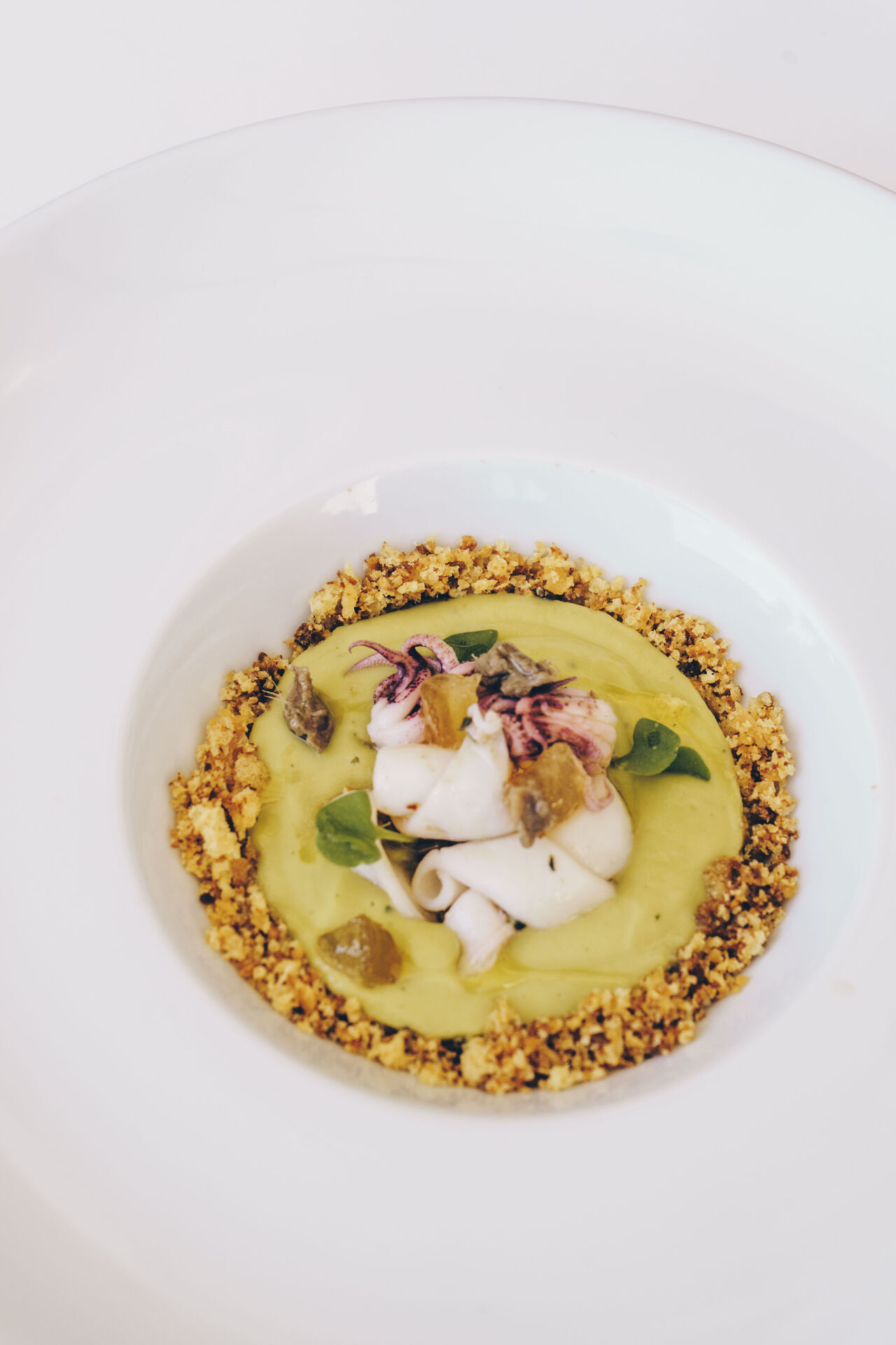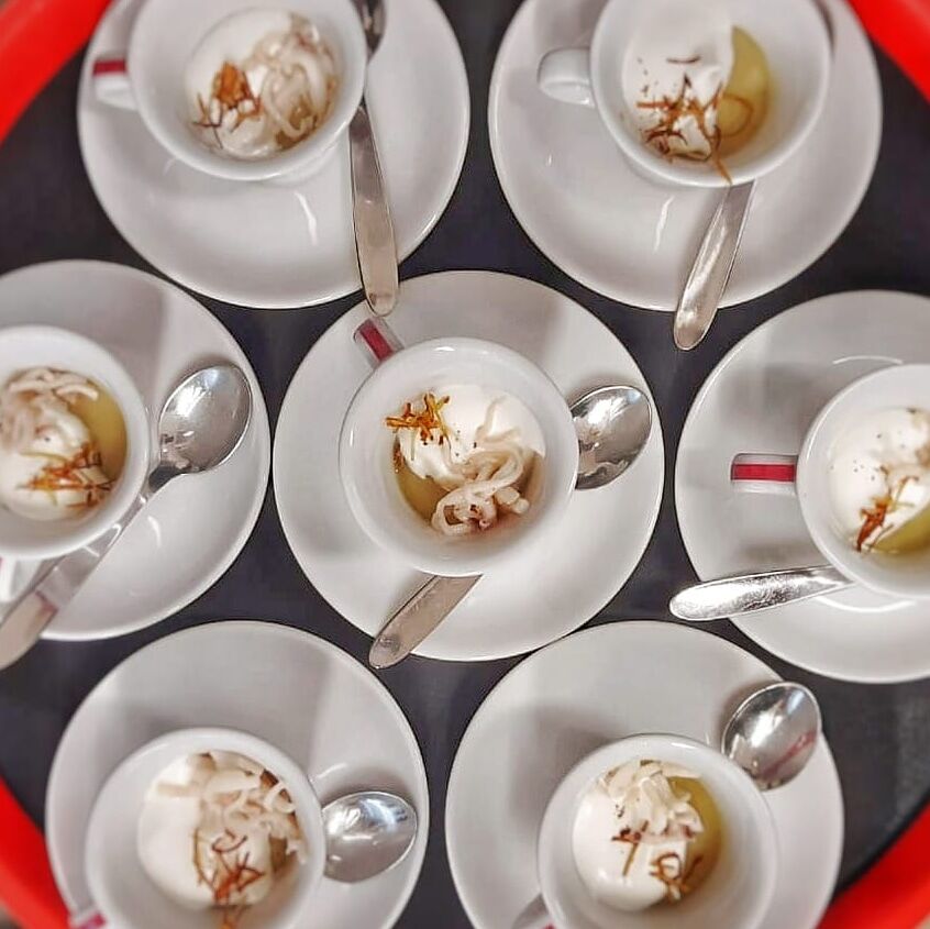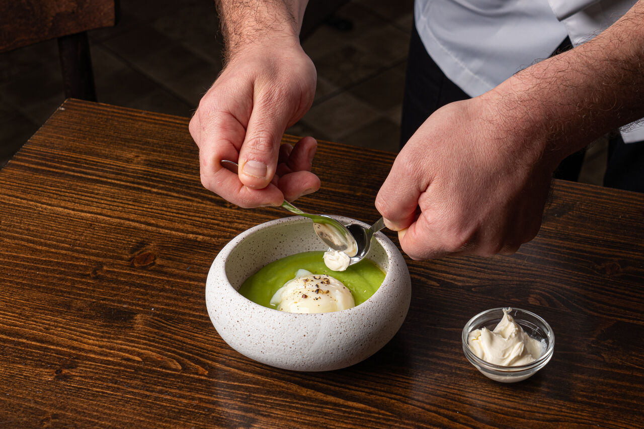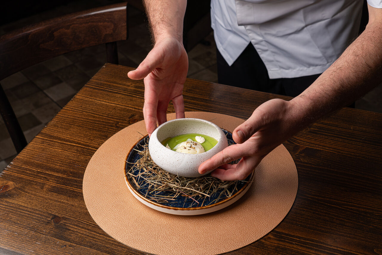 Un locale con cucina a vista che permette all'ospite di sbirciare lo spettacolo sempre nuovo di un processo creativo ispirato dalla stagionalità e dall'unicità della materia prima.
